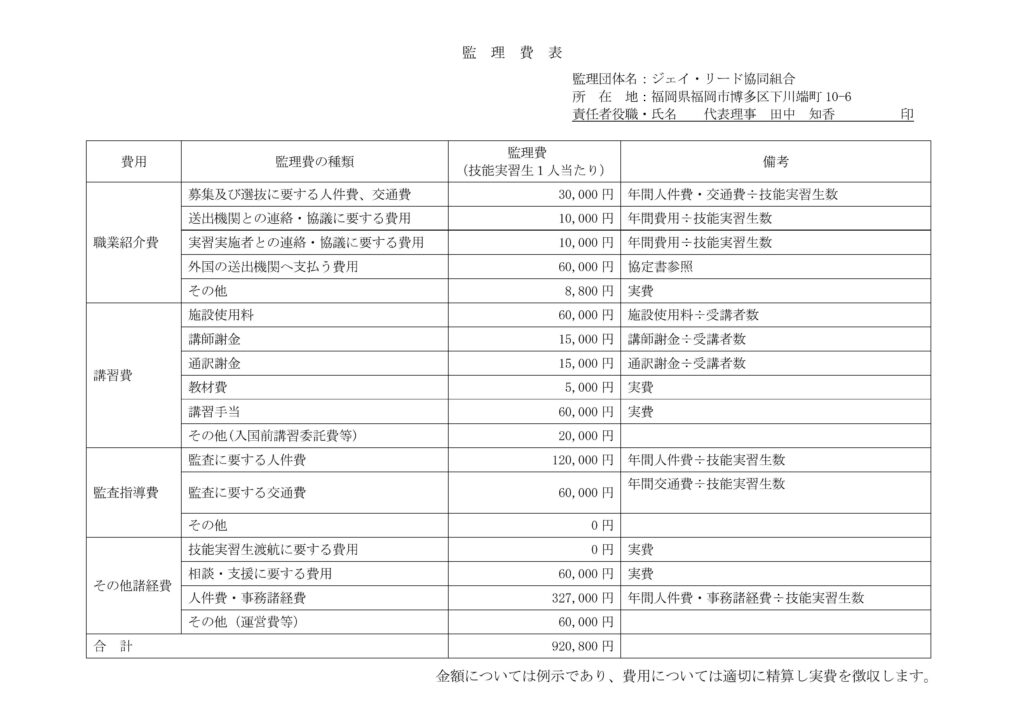 管理費表を追加しました